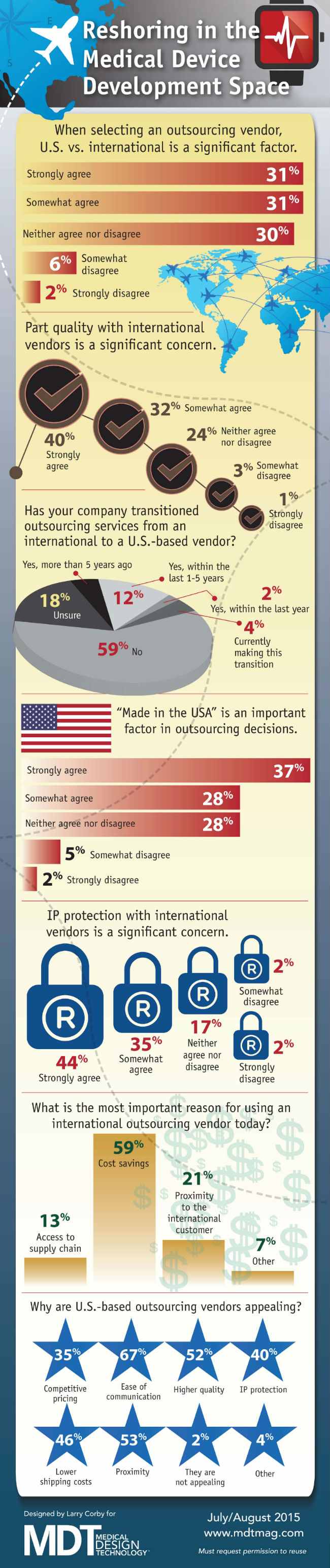 Manufacturing is seeing a shift in outsourcing where certain jobs are returning to the U.S. MDT was curious to see if their readers were participating in this trend or had opinions on topics related to it. This infographic below highlights their survey results. See MDT's original publication here.